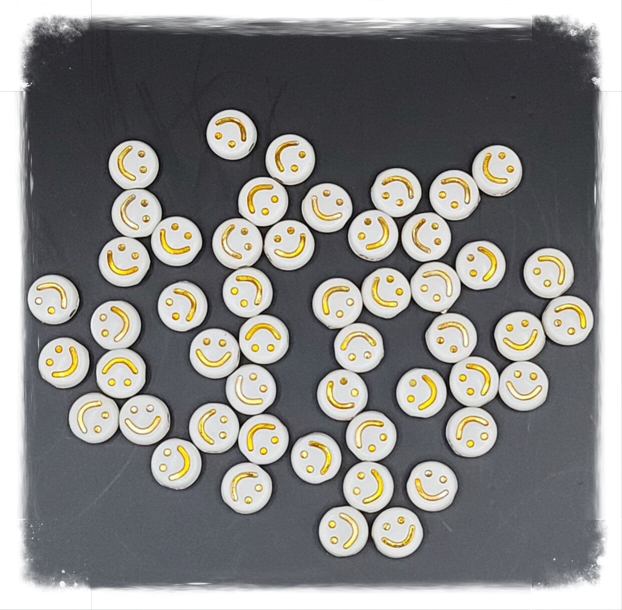 50 smiley kralen in het wit met goud.